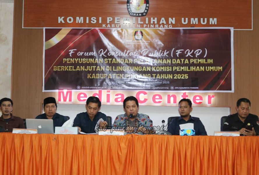kab.pinrang.kpu.go.id - Komisi Pemilihan Umum (KPU) Kabupaten Pinrang sukses menggelar kegiatan Forum Konsultasi Publik (FKP). Acara ini bertujuan untuk meningkatkan kualitas pelayanan publik KPU, khususnya terkait pelayanan informasi publik dan pemutakhiran data pemilih berkelanjutan. Rabu (12/11/25). Kegiatan FKP tersebut berlangsung di Aula Media Center Kantor KPU Pinrang dan dihadiri oleh berbagai elemen masyarakat dan instansi vertikal yang memiliki peran strategis dalam menyukseskan penyelenggaraan Pemilu kedepannya. Dalam sambutannya, Ketua KPU Pinrang, Muh. Ali Jodding, menyampaikan pentingnya peran serta aktif seluruh pemangku kepentingan dalam menjaga validitas data pemilih. "Melalui forum konsultasi publik ini, kami membuka ruang diskusi dan masukan seluas-luasnya agar layanan informasi publik KPU Pinrang semakin prima, dan yang terpenting, data pemilih berkelanjutan kita senantiasa akurat dan mutakhir," ujarnya. Peserta yang diundang dan turut hadir dalam kegiatan ini meliputi: Unsur Pemerintah Daerah: Kepala Dinas Disdukcapil Pinrang dan Kepala Dinas Pemberdayaan Masyarakat dan Desa Kabupaten Pinrang.Unsur Unsur Keamanan dan Vertikal: Kapolres Pinrang, Dandim 1404 Pinrang, Kepala Kantor Kementerian Agama Pinrang, dan Kepala Rutan Kelas IIB Pinrang. Unsur Pengawasan Pemilu: Ketua Bawaslu Pinrang. Unsur Pemuda dan Organisasi Kepemudaan: Ketua Karang Taruna Pinrang, dan Ketua Komite Nasional Pemuda Indonesia (KNPI) Pinrang. Akademisi dan Agama: Ketua STAI DDI Pinrang, dan Ketua Forum Kerukunan Umat Beragama (FKUB) Pinrang. Unsur Pers/Wartawan: Ketua Persatuan Wartawan Indonesia (PWI) Pinrang, Ketua Ikatan Wartawan Indonesia (IWO) Pinrang, Ketua Serikat Media Siber Indonesia (SMSI) Pinrang, Ketua Forum Pers Independen Indonesia (FPII) Korwil Pinrang, Ketua Persatuan Pewarta Warga Indonesia (PPWI) Pinrang, Ketua HIPSI Pinrang, Ketua JOIN Pinrang, dan Ketua AJOI Pinrang. Fokus utama pembahasan dalam FKP ini adalah mekanisme dan standar pelayanan informasi publik KPU Pinrang, serta perkembangan terbaru terkait program Data Pemilih Berkelanjutan (DPB). Kepala Dinas Disdukcapil Pinrang yang diwakili oleh Kepala Bidang Pelayanan Pencatatan Sipil, Musmulyadi, S.Sos, dalam sesi diskusi menegaskan komitmennya untuk bersinergi aktif dalam menyediakan data kependudukan yang valid sebagai basis data pemilih. Sementara itu, dari pihak pengawasan, Ketua Bawaslu Pinrang, Andi Fitriani Bakri, M.Pd, memberikan masukan konstruktif terkait aspek pengawasan dalam pemutakhiran data berkelanjutan. Masukan serupa juga disampaikan oleh Anggota Bawaslu, Aswar, S.Psi., M.I.Kom., yang turut memperkuat perspektif pengawasan terhadap validitas data pemilih. Para perwakilan organisasi wartawan, seperti Ketua PWI Pinrang, juga menyampaikan harapan agar KPU Pinrang dapat lebih terbuka dan responsif dalam menyediakan informasi yang dibutuhkan oleh publik. Diharapkan, hasil dari Forum Konsultasi Publik ini dapat menjadi acuan bagi KPU Pinrang untuk menyempurnakan Standar Operasional Prosedur (SOP) pelayanan publik, sehingga dapat melayani masyarakat Pinrang dengan lebih baik di masa mendatang. (Adl) ....