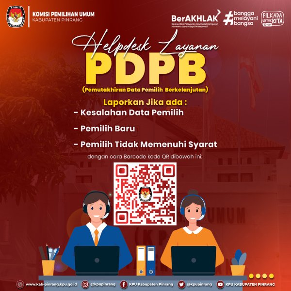 Dalam rangka Pemutakhiran Data Pemilih Berkelanjutan (PDPB), KPU Kabupaten Pinrang membuka layanan masukan dan tanggapan masyarakat terhadap data pemilih.