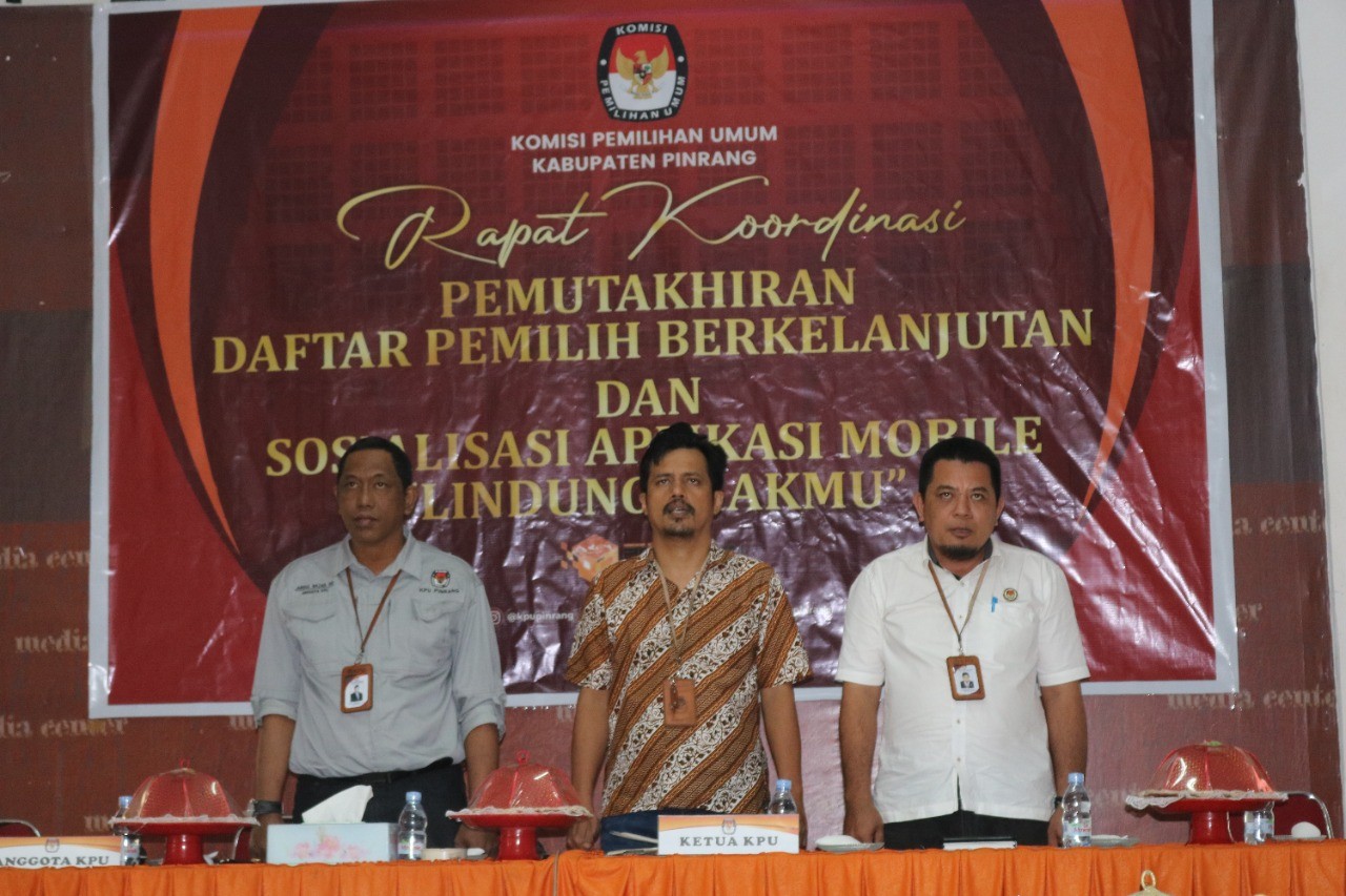 Pinrang, https://kab-pinrang.kpu.go.id/ - KPU Kabupaten Pinrang melaksanakan Rapat Koordinasi (Rakor) Triwulan II Pemutakhiran Data Pemilih Berkelanjutan Tahun 2022 dan Sosialisasi Aplikasi Mobile Lindungi Hakmu pada hari Kamis, tanggal 23 Juni 2022. Rakor Triwulan II dimulai pada pukul 10.00 Wita di Ruang Media Center. Ketua KPU Kabupaten Pinrang, Alamsyah membuka Rapat Koordinasi (Rakor) Triwulan II Pemutakhiran Data Pemilih Berkelanjutan Tahun 2022. Dalam sambutannya Alamsyah menyampaikan “Kami harus bekerja sesuai Tahapan. Berdasarkan Undang-Undang Nomor 7 Tahun 2017 tentang Pemilihan Umum Tahapan Pemilu dimulai 20 bulan sebelum hari pemungutan suara. Hari pemungutan suara Pemilu ditetapkan pada hari Rabu 14 Februari 2024 sehingga tepat 20 bulan sebelum itu maka Tahapan Pemilu dimulai 14 Juni 2022”. Pada kesempatan itu Alamsyah juga mengapresiasi Kecamatan Watang Sawitto dan Mattirobulu yang mendukung pelaksanaan PDPB 2020 “Saya mengapresiasi Kecamatan Watang Sawitto dan Mattiro Bulu yang selalu mengupdate data pemilihnya” ungkapnya. Ketua Divisi Perencanaan Data dan Informasi Abd. Razak menyampaikan laporan pelaksanaan Pemutakiran Data Pemilih Berkelanjutan Tahun 2022 dan memberikan sosialisasi penggunaan Aplikasi Mobile Lindungi Hakmu. “Pemutakhiran Data Pemilih Berkelanjutan untuk Pemilu Tahun 2024 bertujuan untuk menyediakan data dan informasi pemilih secara komprehensif, akurat dan mutakhir” paparnya. Proses tanya jawab dengan peserta dipandu oleh Ketua Divisi Sosialisasi, Pendidikan Partisipasi Masyarakat dan SDM, Muh. Ali Jodding. Peserta Rakor menanyakan mengenai hak pilih bagi pemilih pemula yang bersekolah di luar daerah. Alamsyah menjawab “tetap diberikan hak konstitusinya, jika berada di luar provinsi bisa diberikan dua surat suara untuk Pemilu dan mengurus pindah pemilih. Kami akan memastikan hak pilih terpenuhi baik bagi warga pinrang atau pendatang”. Alamsyah menyampaikan bahwa akan melakukan sosialisasi pemutakhiran data pemilh untuk mengurangi golongan putih (golput) dan meningkatkan partisipasi masyarakat. Beberapa Peserta Rakor juga tertarik mengenai aplikasi lindungi hakmu yang salah satunya menanyakan apakah ada cara bagi pemilih untuk mengakses aplikasi lindungi hakmu di wilayah yang tidak bisa mengakses jaringan internet. Razak menyampaikan bahwa Pemerintah telah melaksanakan pemerataan jaringan internet dan telah terlaksana hampir 70% di Wilayah Indonesia. “KPU akan menggunakan sms gateaway untuk memudahkan pemilih mengakses data pemilihnya jika tidak memiliki jaringan internet di wilayahnya. Di Tahun 2013 KPU Kabupaten Pinrang telah menggunakan sms gateaway untuk mengecek data pemilih” ungkapnya.(aip)